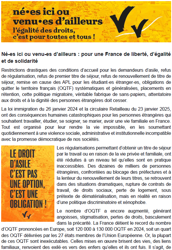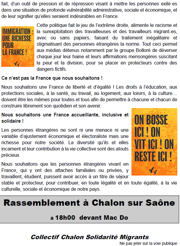 Tract du collectif Chalon Solidarité Migrants pour cette journée du 18 décembre :